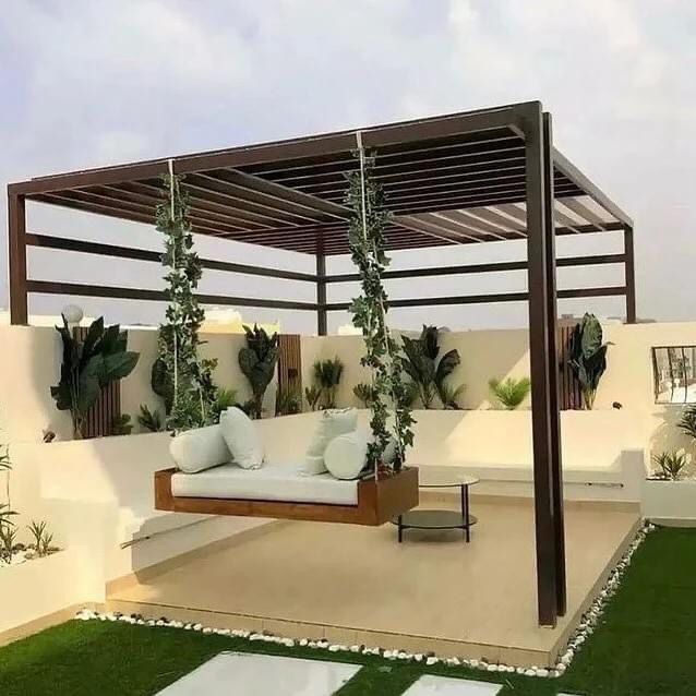مما لا شك فيه ان جمال الحدائق لا يكتمل دون وجود جلسات خارجية فهي جزء مهم من كل منزل فهي تعطي انطباع خلاب مميز للمنزل مجرد النظر اليه ، كما انها ايضا ديكور ملائم لفصل الصيف مع اضافه لمسه منعشه وألوان زاهيه لذا نقدم لك احدث و اجمل و افضل التصاميم للجلسات لكي تتمتع بحديقه متكامله تساعدك على الاستمتاع بجو هادئ وسط اجواء رائعه دون الخروج من المنزل بالاضافه الى النباتات والاشجار والاضاءات وبذلك تتمتع بجو متكامل من البهجه والرفاهيه انت وعائلتك .
